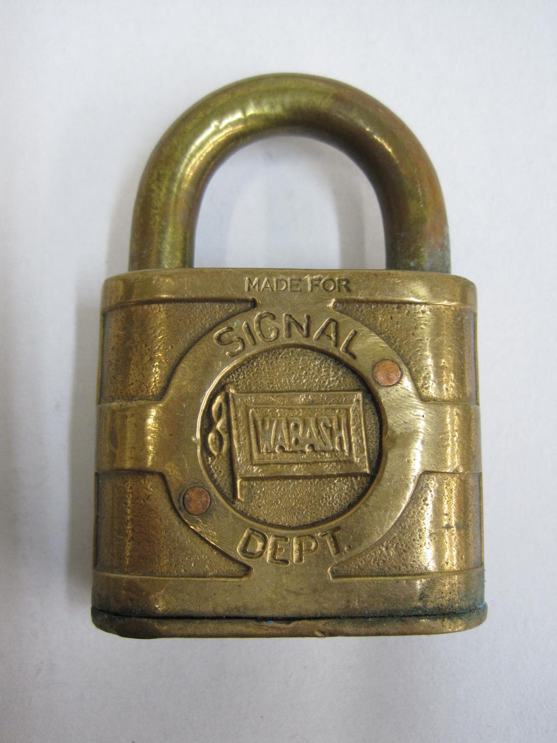 Yale signal lock cast with the Wabash flag logo. This