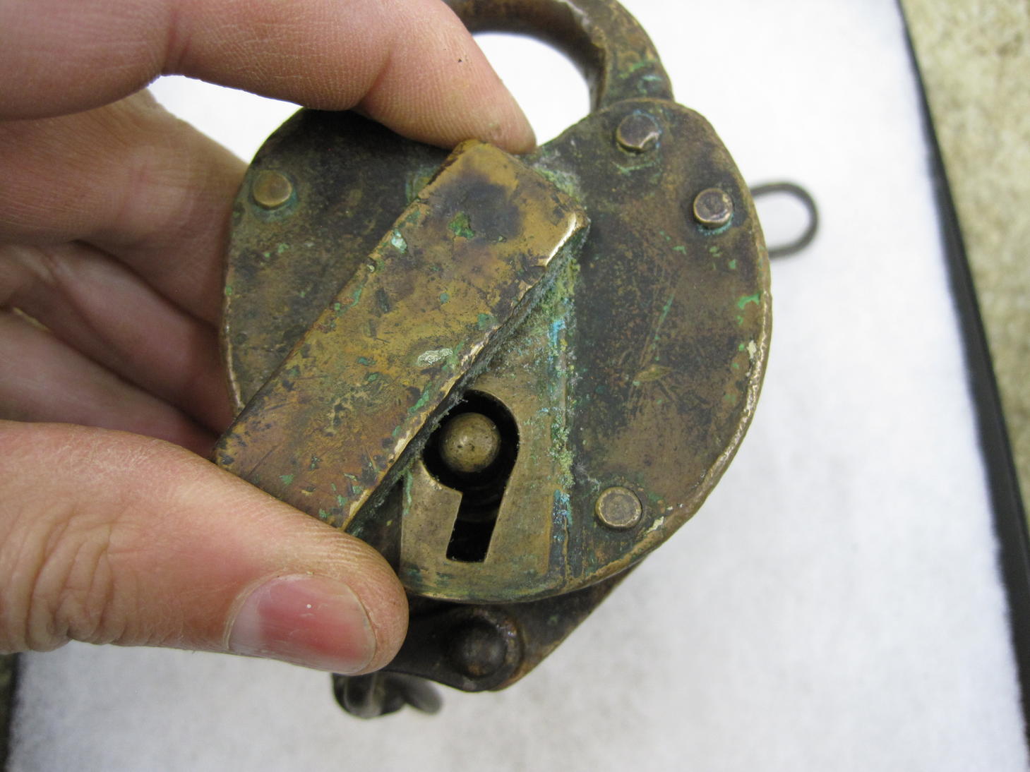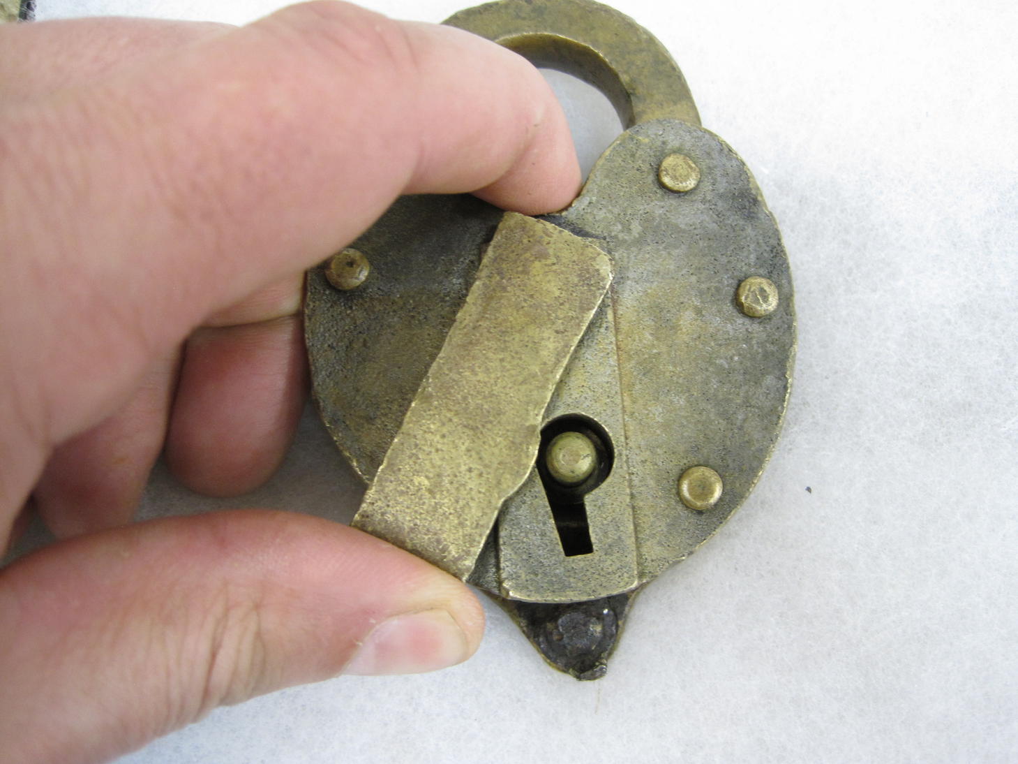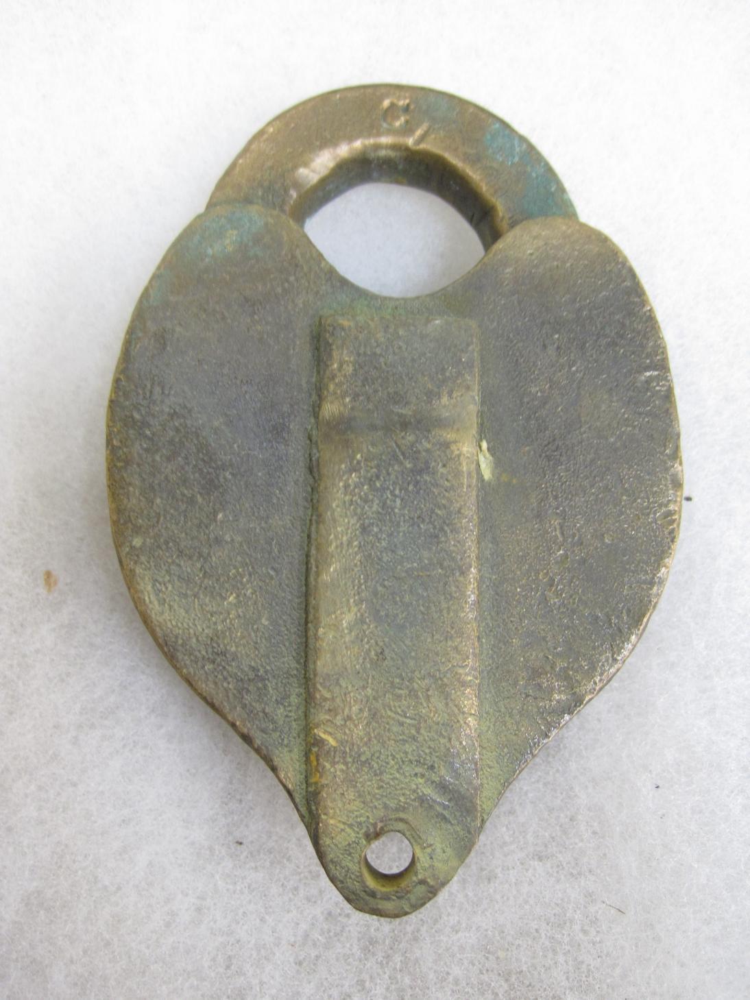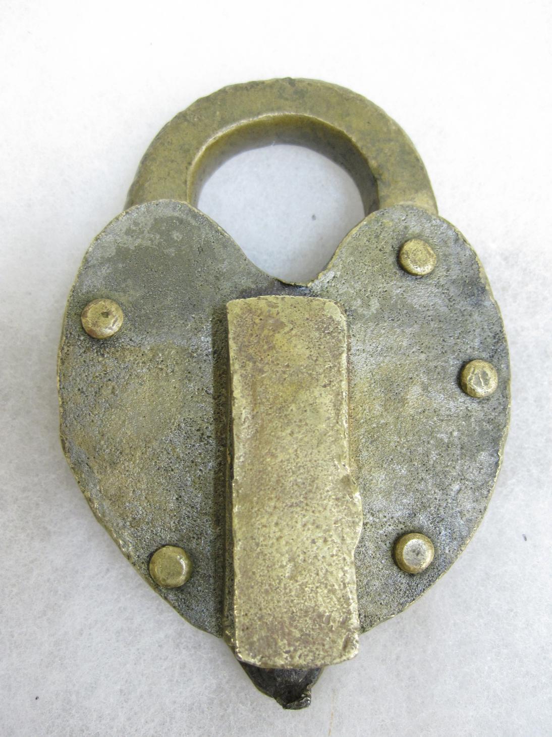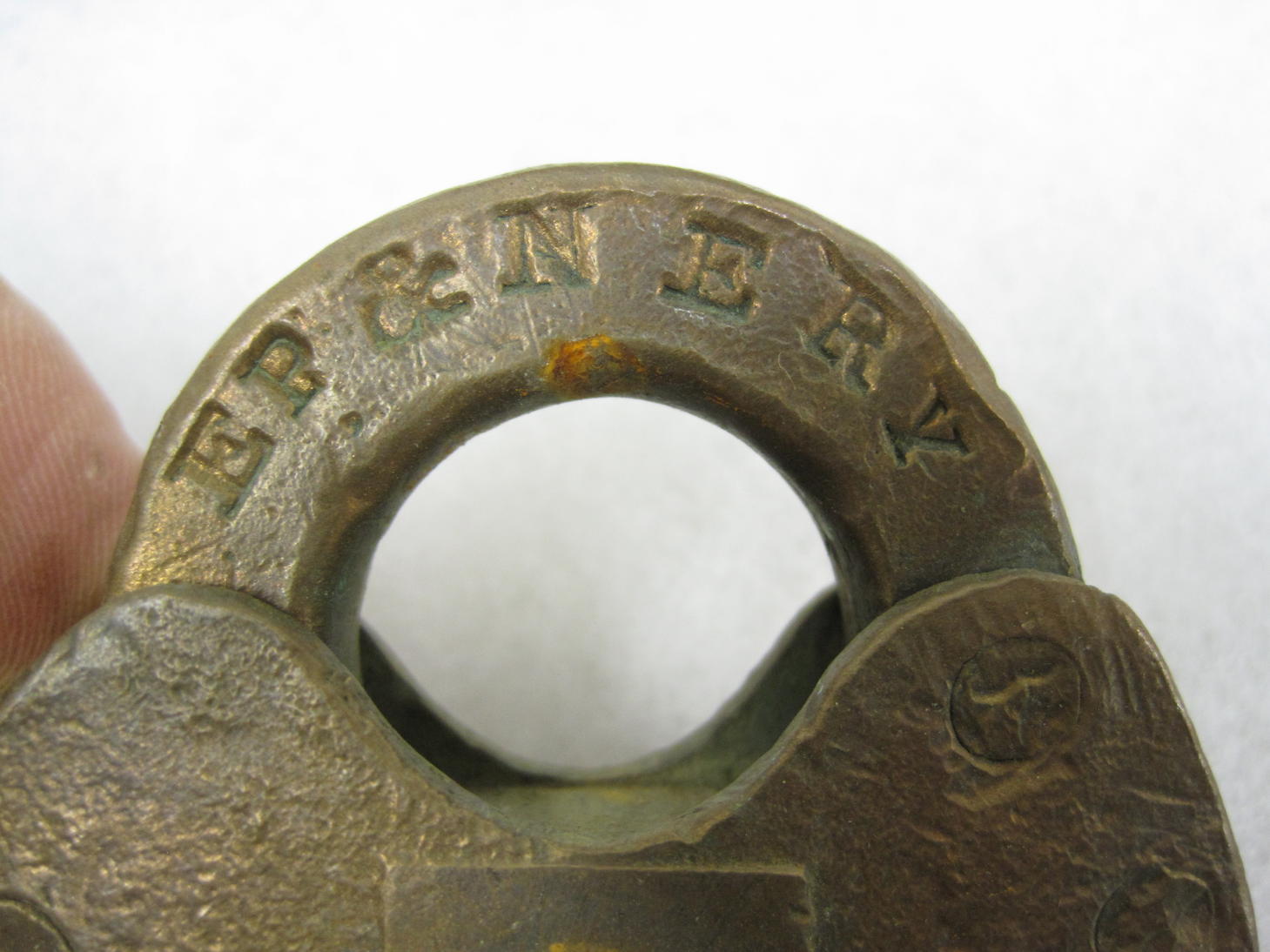 MM Buck stamped brass heart shape lock is marked EP&NE