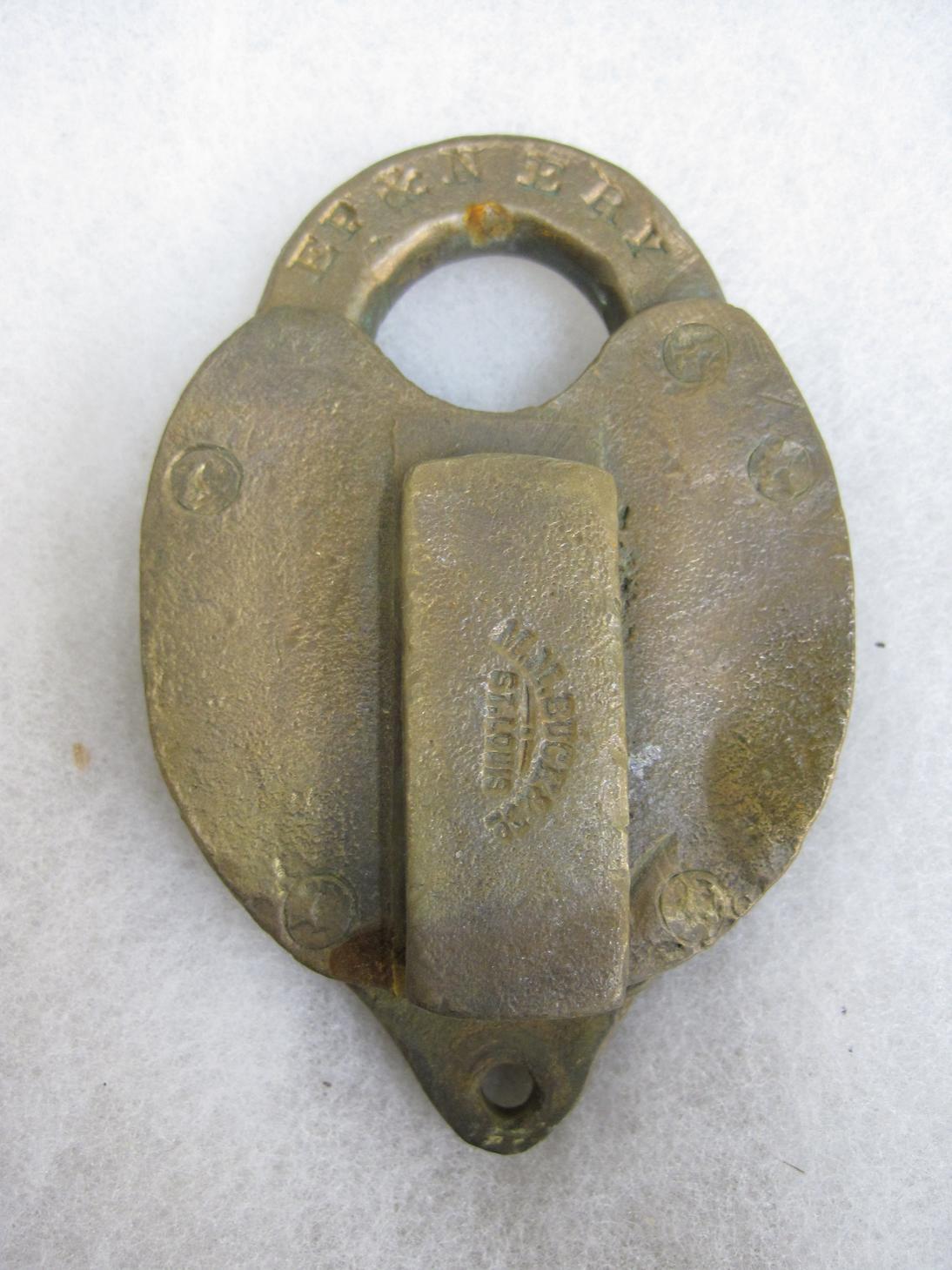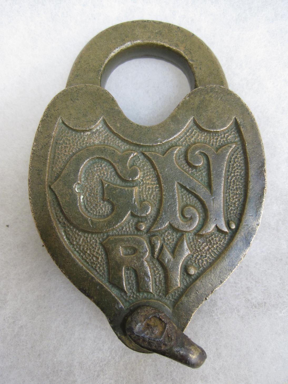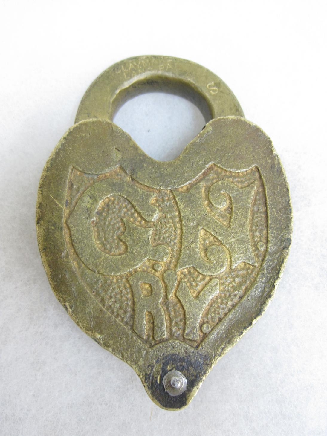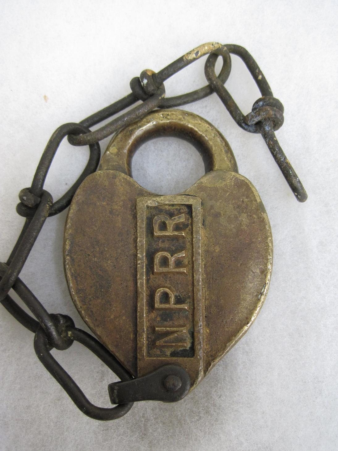 MM Buck stamped brass heart shape lock is marked EP&NE